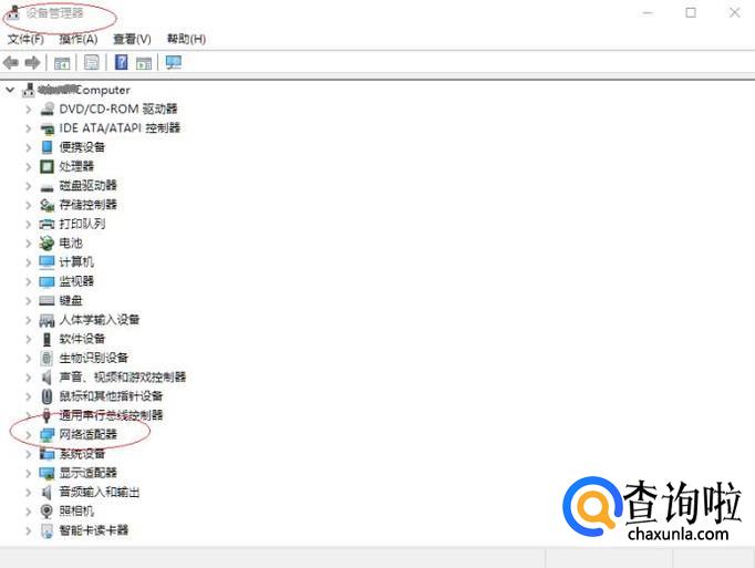弹出"设备管理器"对话框,如图所示。展开树形目录结构,点击"网络适配器"项。