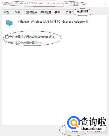取消勾选"属性→电源管理→允许计算机关闭此设备以节约电源"复选框,如图所示。本例到此结束,希望对大家能有所帮助。