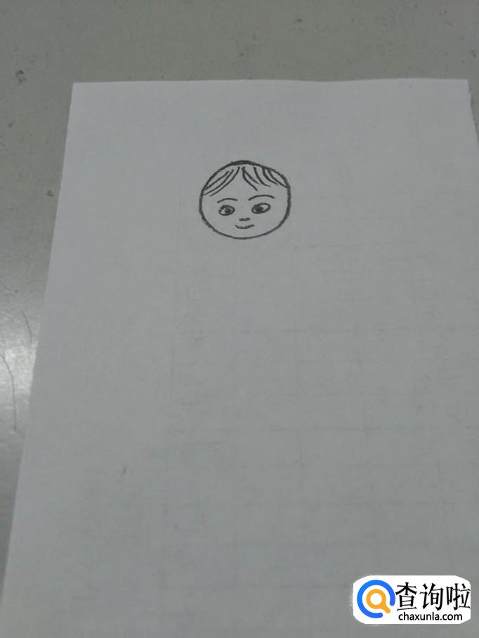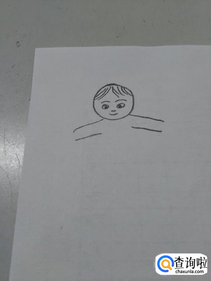 从男孩头部左右两侧,各画几条弧线,表示两个小辫子,男孩就变成了女孩。