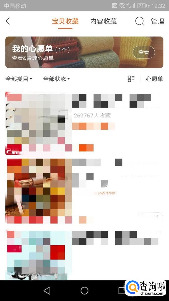 进入“收藏夹”后,我们可以看到“宝贝收藏”里面有收藏的宝贝,上方还有一个“我的心愿单”点击进入。