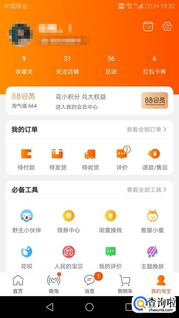 打开“手机淘宝”后,点击“我的淘宝”进入,可以看到人物头像下方有“收藏夹”点击进入。