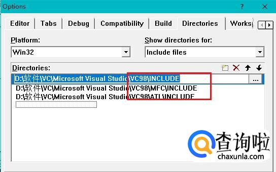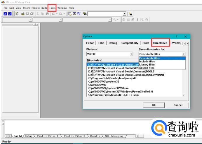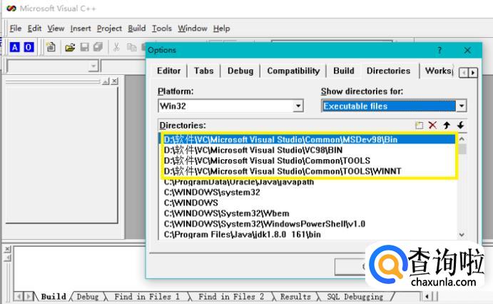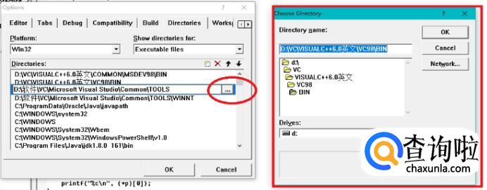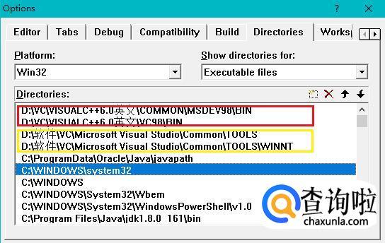 打开vc++6.0 tools->options->Directories,从Executable files开始修改 。