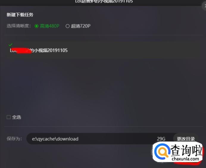 在弹出窗口,选择视频清晰度及保存路径,最后点击下载。