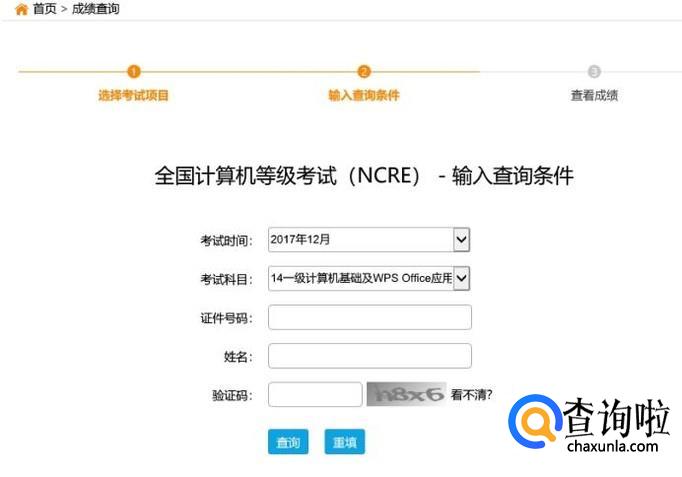 进来之后,就选择报考时间和科目,填写自己证件号码和姓名就可以点击查询。