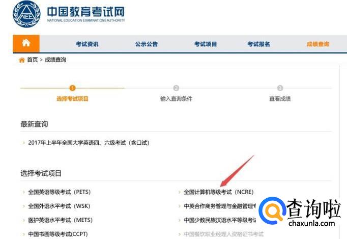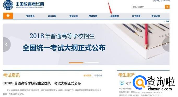 考试在浏览器搜索“中国教育考试网”进入这个网站查询成绩。