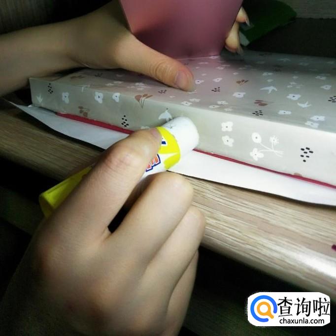 用胶棒涂抹一条宽,将另一边黏上去,如下图所示