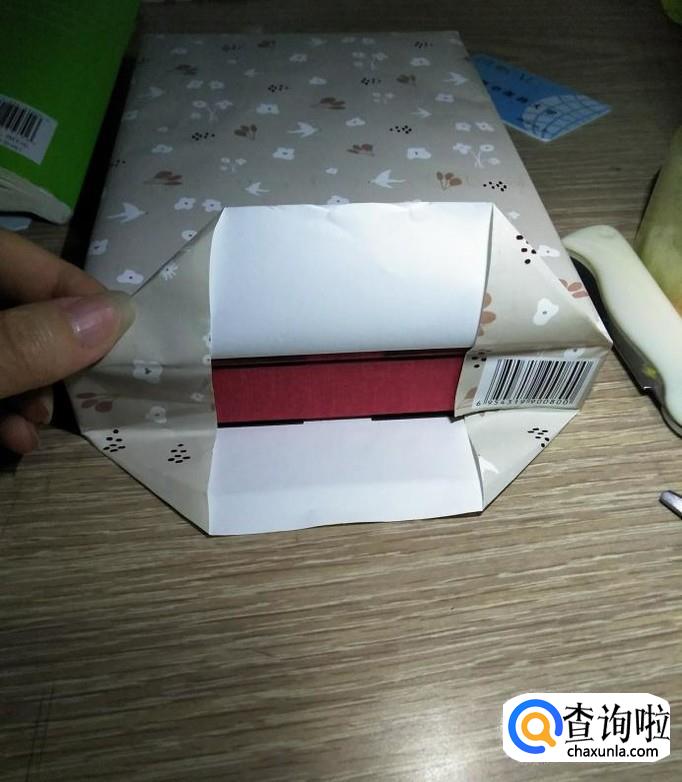 用纸先包一下礼物,完全包起来,确认我们需要的礼物纸的大小,长宽