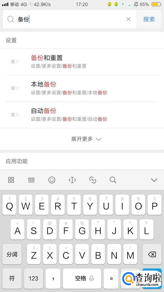 在设置里面搜索"备份"就可以找到备份设置,点击进入备份,完了把备份文件保持到电脑或铺上。