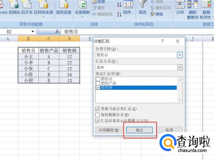 弹出的界面,我们是对销售额的求和分类汇总,此处我们不做更改,直接点击确定;