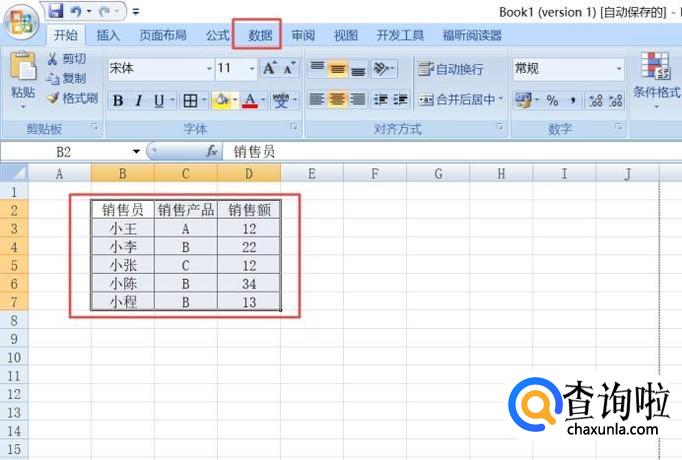 然后我们选中图示中的数据表格,之后点击工具栏中的数据;
