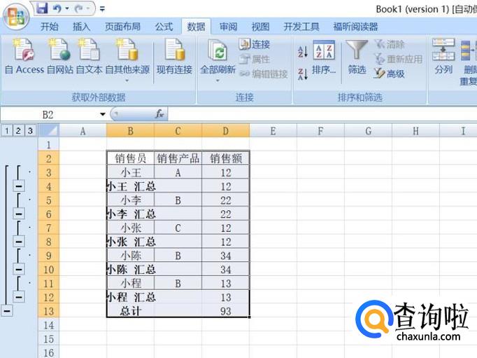 结果如图所示,这样就对销售额进行汇总求和了。
