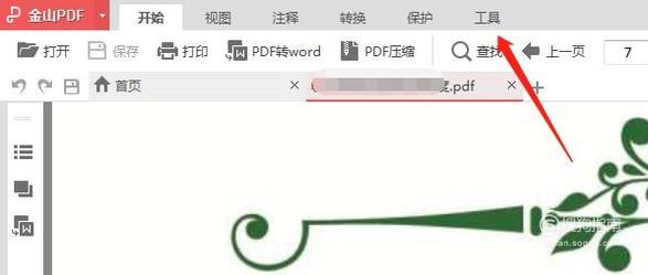 打开后我们在pdf文件顶部的菜单栏找到“工具”点击展开。