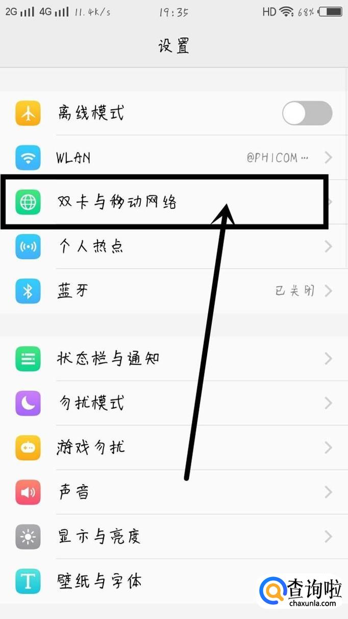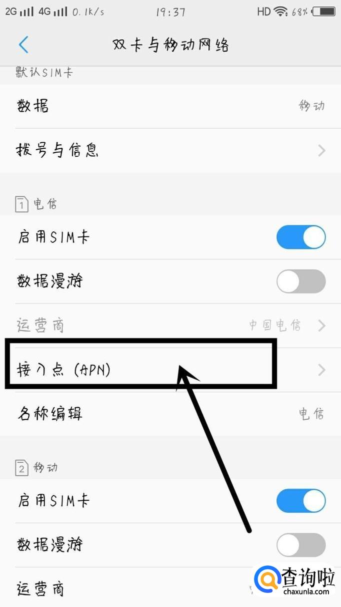 点击双卡与移动网络进入下一页面,如图所示。