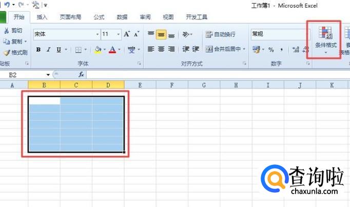 首先,我们打开我们的电脑,然后我们打开我们电脑上面的excel,之后我们选中我们想要自动填充颜色的区域,之后点击条件格式的下拉箭头;