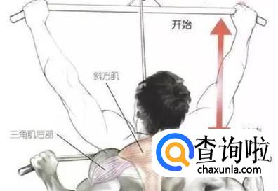 在确保身体都处于正确位置后,首先将身体稍稍向后倾,双手用力将拉杆向下拉,直至胸部处,然后深呼下气,再用双手将拉杆向头顶上放进行推动,这样上下来移动拉杆,以帮助增强背部肌群的力量,一定要注意量力而行,以免拉伤。