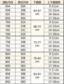 我们通常说的胸罩的码号是由胸罩尺寸和罩杯尺寸两部分组成的。