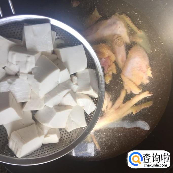 然后把豆腐倒进锅中,盖上锅盖,小火煮一个小时。