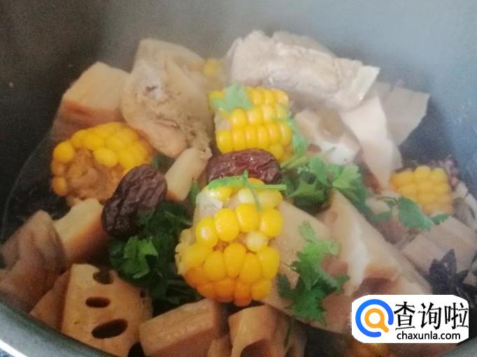 品尝所有的食材都煮好后,就可以拔掉电源,把我们煮好的红枣玉米藕排骨汤盛出来就可以开吃了。
