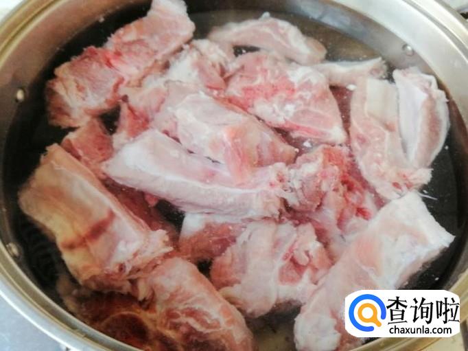 首先选适量排骨,把排骨用刀切成块,用清水洗净,然后煮锅烧水,把骨头焯一遍水待用。