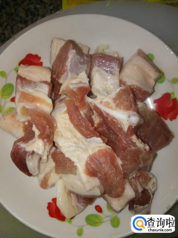 五花肉选择肥瘦相间的;我们将五花肉洗净,切成块状,不要太大块,1cm左右厚和1cm左右宽就好了,这样容易熟一点;