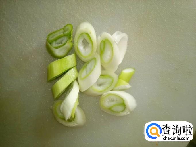 取一小段大葱,将大葱最外一层膜去掉,洗一下,再切小块一些;下点大葱会使菜香很多;