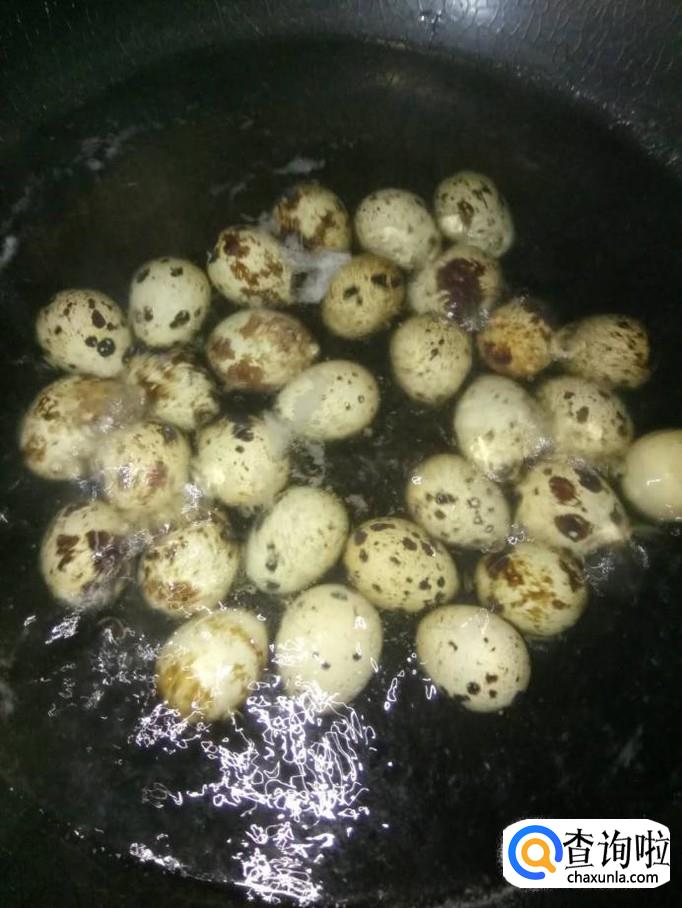 我们将鹌鹑蛋洗净后放入锅里,加适量的水、少量盐、大火煮,煮熟为止;将鸡蛋捞出用凉水冲凉,再将壳剥掉,备用;