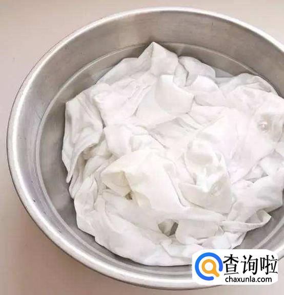 6个小时后将衣服取出,再往干净的盆里倒入40度左右的温水,然后把衣服放进去,与温水完全融合,然后倒入漂白剂(超市买的普通漂白剂即可),搅拌均匀,再泡2-3个小时。