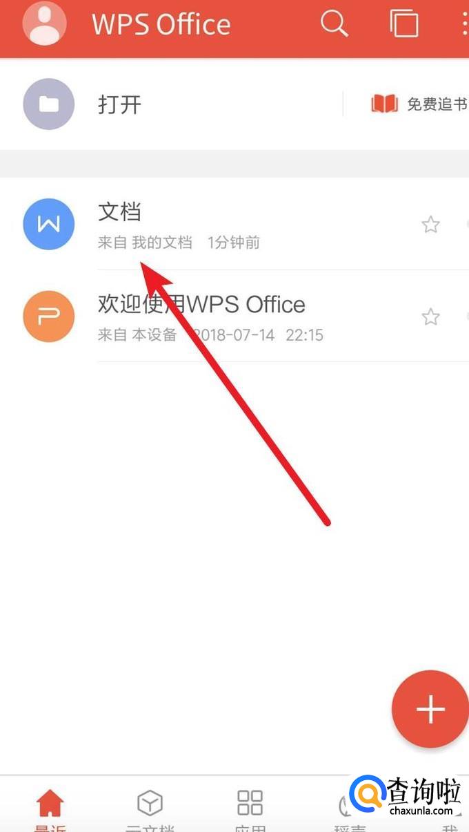 在软件的首页,可以看到最近编辑的文档,我们长按这份文档。