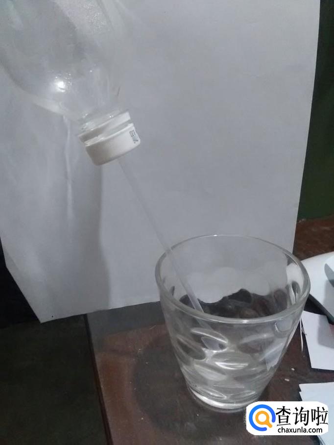 把带着吸管的瓶盖重新拧在瓶子上,把瓶子倒过来,就可以吸水了。