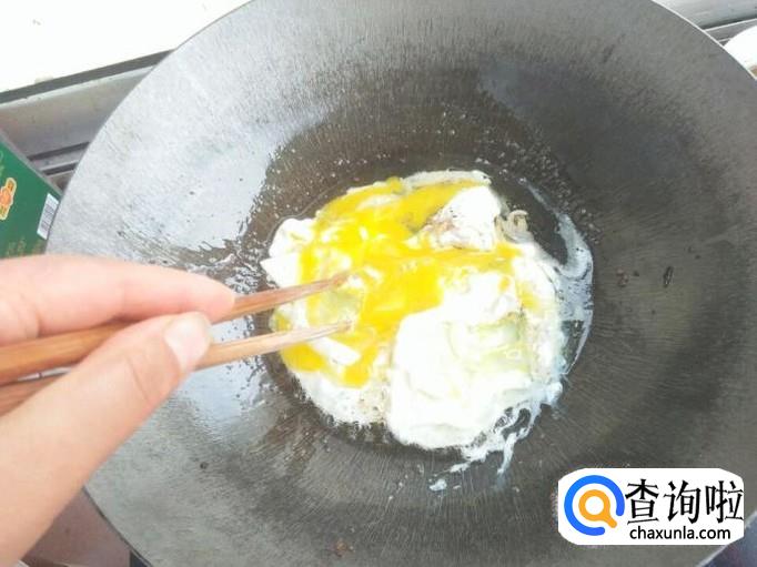 鸡蛋使用多少这个没有固定的数量,你要是一顿饭吃得多,那么你多用点,你要是吃得少而精,那就少使用好了。我今天就给宝贝自己做的,所以用了两个鸡蛋,锅里加入食用油烧热打进鸡蛋,用筷子化开做成鸡蛋碎。