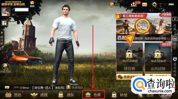 进入游戏大厅后,在下方的菜单栏中,点击“仓库”选项。
