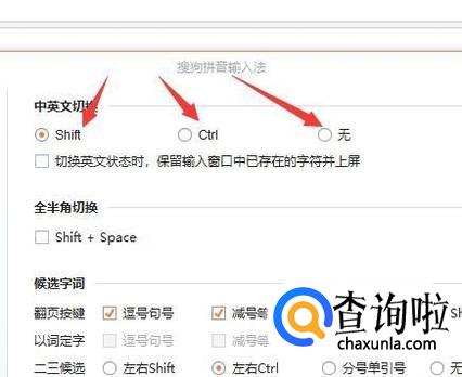 然后在中英文切换的页面中设置一个快捷按钮,可以选择shift或者ctrl等,直接选择一种就可以了。