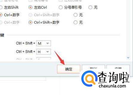 最后在设置页面中的最后位置直接点击确定就行,这样能直接将设置的内容都保存下来,这是非常好的,自己在平时的使用过程中就能直接点击快捷键进行切换了。