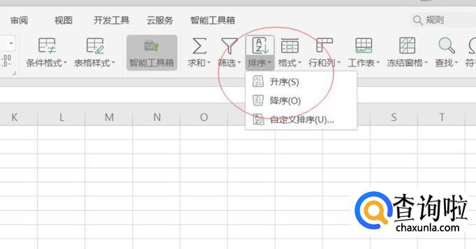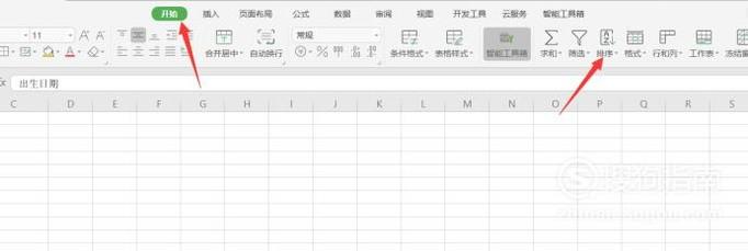 在上方的工具栏中找到开始下面的排序