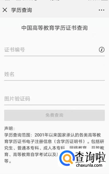进入之后,输入学历证书相关信息,点击“免费查询”即可。