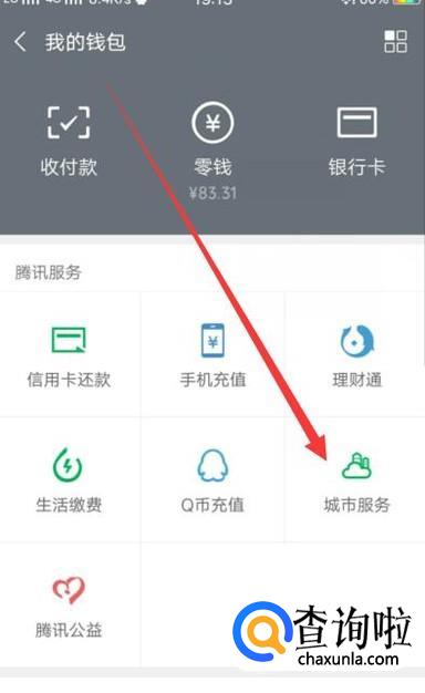 进入之后,选择“城市服务”,进入下一页面,如图所示。