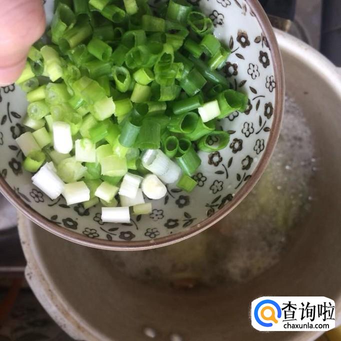 然后把香葱切成葱花,倒入锅中,如下图所示。