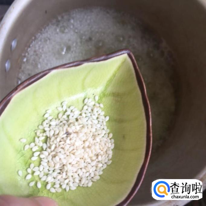 接着往锅中加入适量的白芝麻,小煮片刻就可以出锅了。
