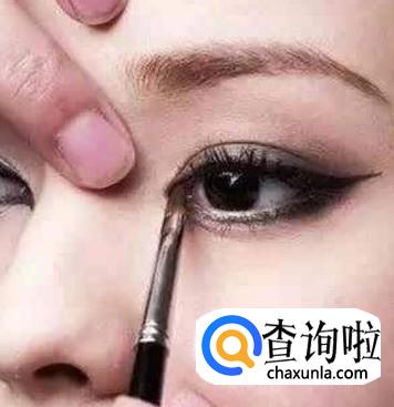 刻意强调眼线也能显得眼睛很大,在睫毛根部画上内眼线,再画上外眼线,眼尾处眼线向上翘,起到放大眼睛的效果。