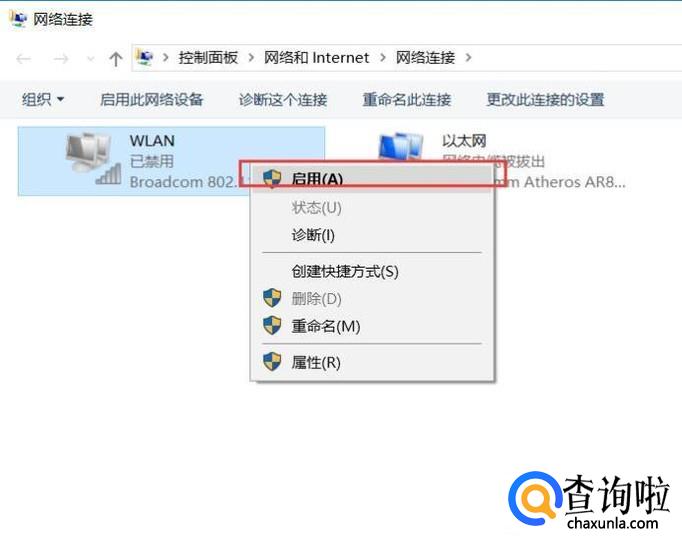 接下来,我们再次对着无线网卡硬件击右键,选择“启用”按钮。