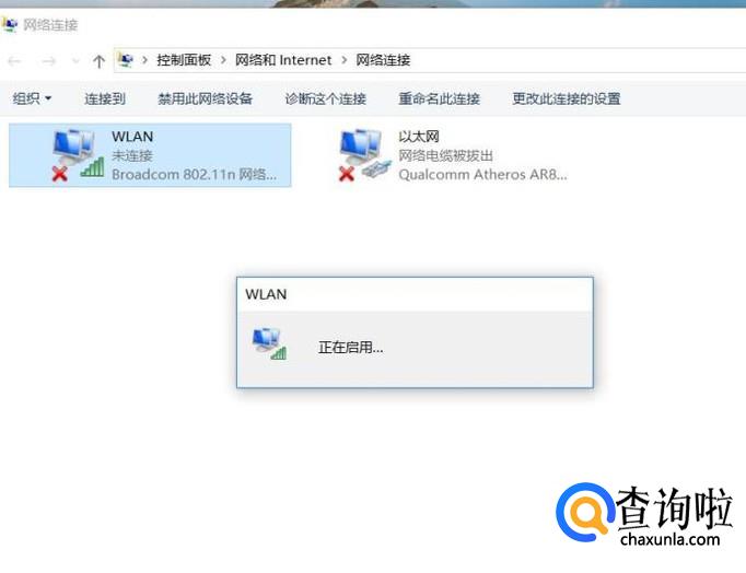 接下来将显示无线网卡设备正在启用中,我们耐心等待无线网卡设备启用即可。