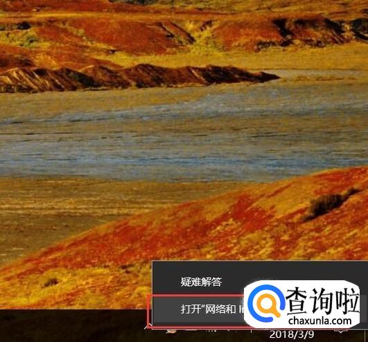 如果确认无线网卡已经处于开启状态,我们在任务栏中,对着网络图标击右键,选择“打开网络和Internet设置”选项。
