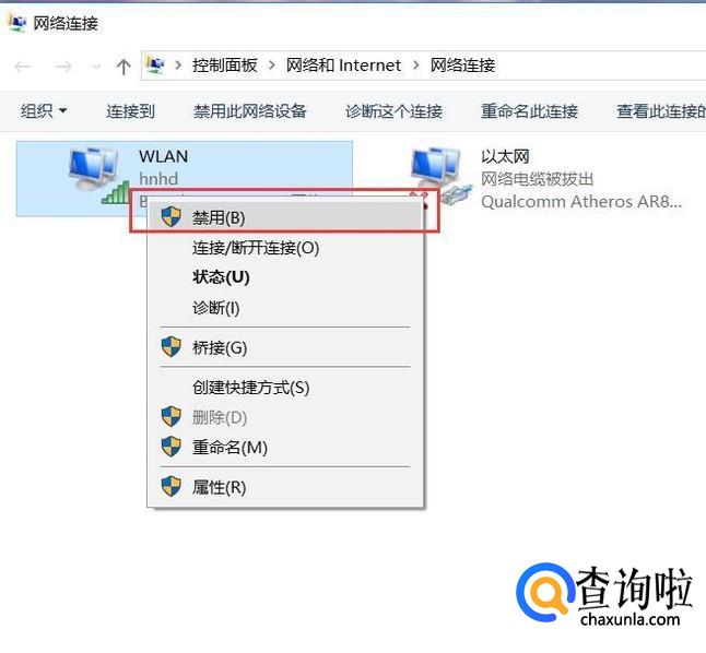 接下来,找到电脑系统中的无线网卡设备,击右键,选择“禁用”选项。