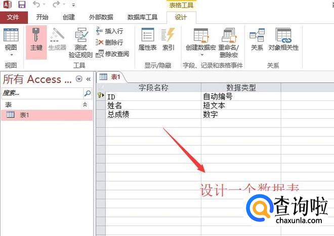 首先打开Access数据库,设计一个数据表,如下图所示,数据表不需要太多字段
