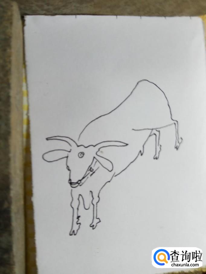 画出公牛的腹部,因为公牛在奔跑,所以腹部显得稍微有点长。