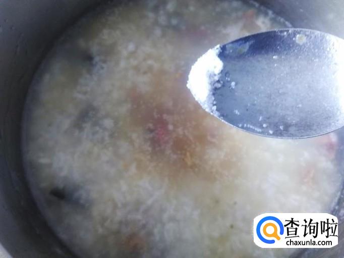 然后下皮蛋瘦肉进去搅拌均匀。