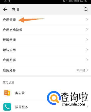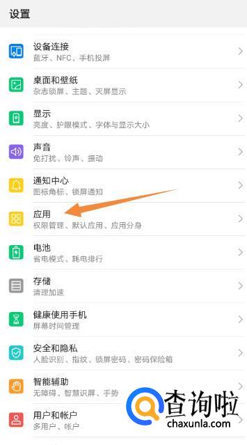 然后点击手机桌面上的“设置”,在设置页面再点击“应用”。