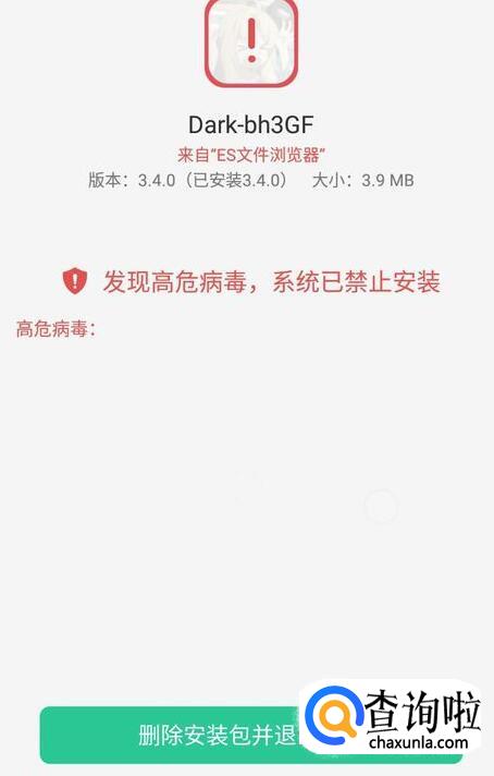 当OPPO手机安装软件时,被检测为高危病毒禁止安装,一般会是如下图所示的提示: