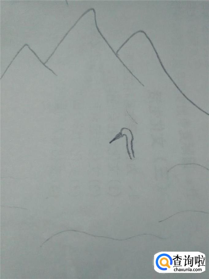 在嘴的右边画两条弯曲的线,表示白鹭的头和脖子。