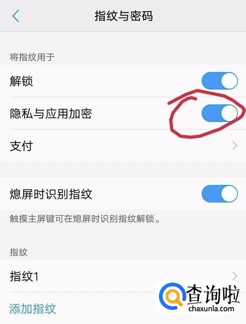 设置完密码之后它会自己跳回上一层界面,这是隐私与应用加密就勾选好了。